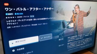 ワン・バトル・アフター・アナザー(2025年/アメリカ)..最愛の娘と平凡ながらもさえない日々を過ごす元革命家のボブ。しかし、突然娘がさらわれ、生活が一変する。異常な執着心でボブを追い詰める変態軍人“ロックジョー”ら、刺客から逃げるなかで、テンパりながらもボブに革命家時代の闘争心が蘇っていく(U-NEXTより)..レオナルド・ディカプリオとショーン・ペンの共演。.上映時間が160分と長い映画。元革...