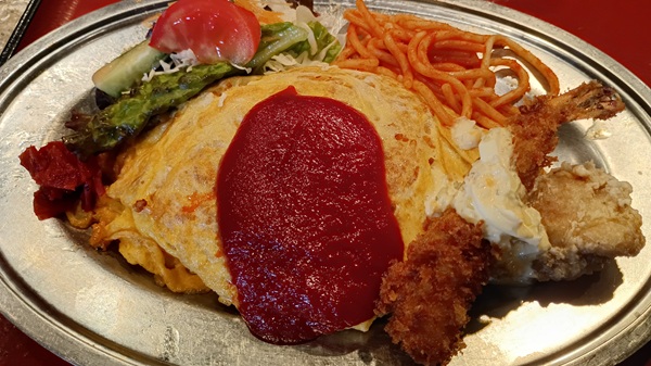 サラダにから揚げ、海老フライにちょこっとナポリタン。まるで大人のお子様ランチ。