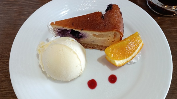 酸味あるトマトスープに大量の肉そぼろ。生パスタのリングイネを絡めると、あらまあイタリアン。小ぶりのキッシュが丸ごと入っている。