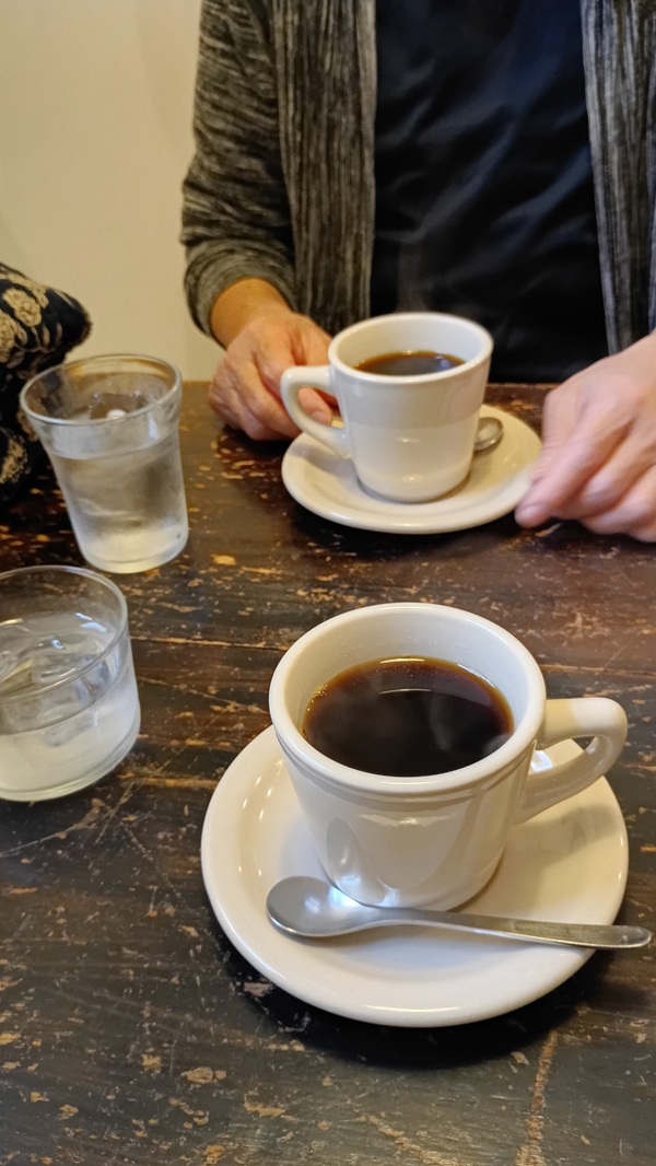 甘さ控えめで、熱いコーヒーと合う。丁寧に淹れるこの一杯も大変美味しい。