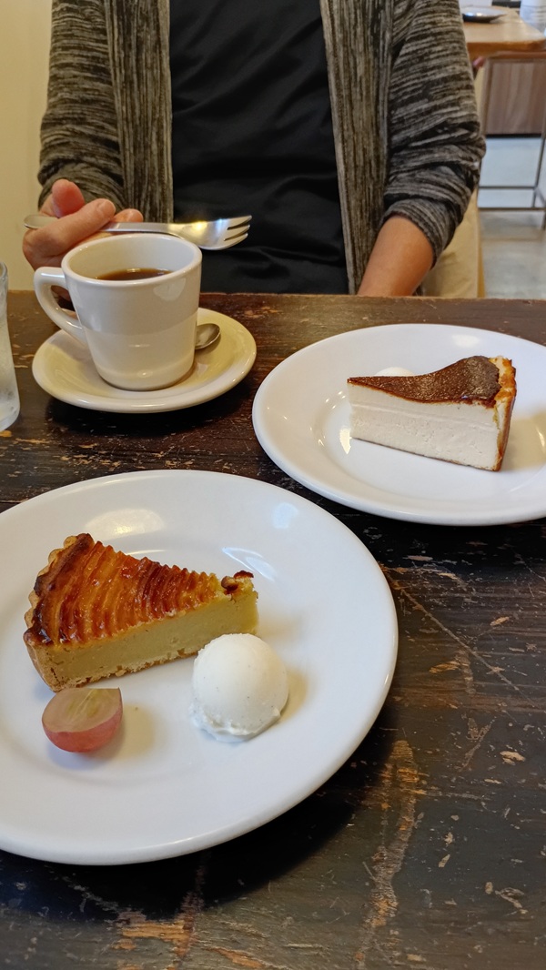 バスクチーズケーキ(おかん)とさつまいものタルト。