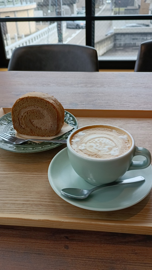 大仏ラテとカフェモカロールケーキを