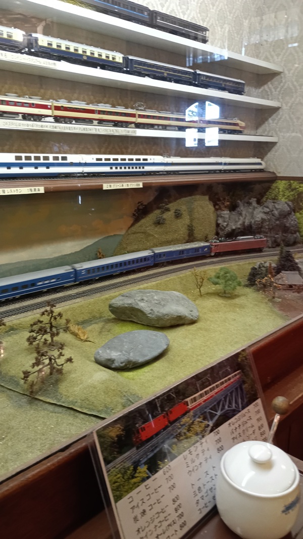 店内をぐるっと一周するジオラマがあり、店主が電車を走らせてくれる。