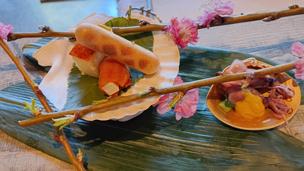 薄豆豆腐、甘えび、ふきのとう